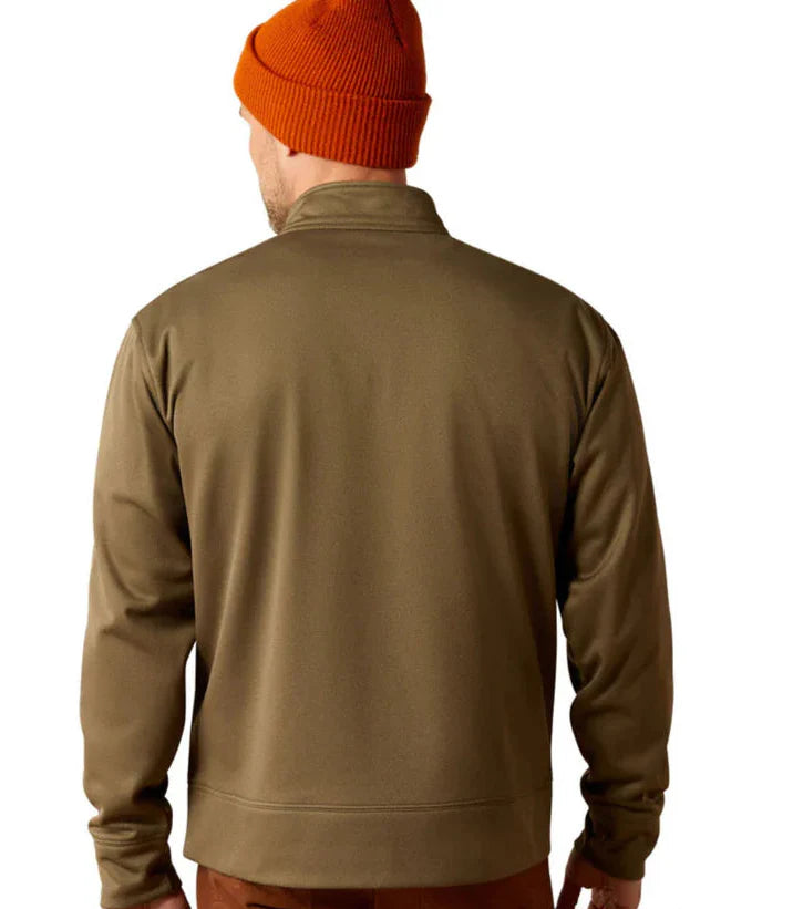 Suéter Ariat Brine verde-oliva/marrom com logo da equipe e zíper 1/4