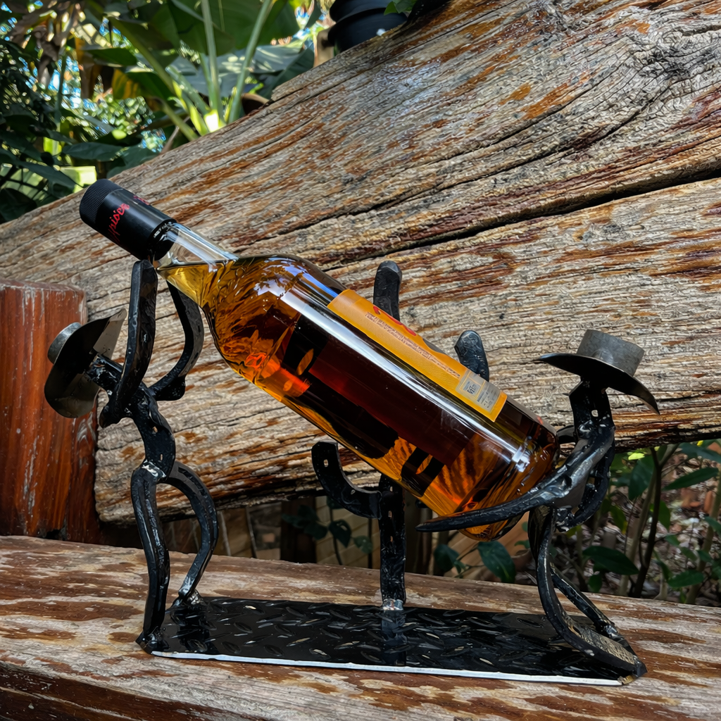 ✔ Peça única, feita à mão ✔ Estrutura em ferraduras artesanais ✔ Design rústico imponente e exclusivo ✔ Suporte firme e estável para garrafas ✔ Visual marcante que valoriza o ambiente ✔ Produto feito para durar muitos anos